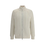 Brunello Cucinelli’s Cashmere Jacket is a perfect balance of luxury and functionality. The double-slider front zipper closure allows for easy adjustment, while the ribbed collar, hem and cuffs offer a stylish finish and comfortable fit. The two zippered side welt pockets are practical and discreet, ideal for safely storing small items. The padded and quilted interior provides extra warmth, making this jacket ideal for colder seasons without sacrificing comfort and style. Made of fine cashmere, it is a garment that combines sophistication and performance, perfect for any occasion, from the casual to the most sophisticated look.
