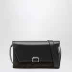 Brunello Cucinelli dark brown suede and smooth-leather bag with magnetic flap closure, adjustable and removable shoulder strap, internal zip pocket, leather lining, card pocket, and metal front detail with embossed logo lettering. Size and Fit - Width 27 cm x Height 16 cm x Depth 9 cm Adjustable shoulder strap length min 70 cm - max 80 cm