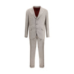 Brunello Cucinelli’s silk and wool Suit is a perfect example of timeless elegance, made from the highest quality materials. The blazer, featuring peaked lapels, has three welt pockets with patina, adding a touch of understated sophistication. The three-button front closure lends a balanced and sophisticated look, while straight pants with turn-ups complete the ensemble with a clean, modern silhouette. The trouser closure features a zipper, hook and button, with belt loops on the waistband for added comfort and personalization. The stylish and versatile check pattern adds a distinctive detail that makes the ensemble suitable for a variety of occasions, giving it an understated yet contemporary touch of class.