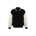 Wool L-Nyman Jacket by Diesel features ribbed collar, snap button front closure, ribbed cuffs, ribbed hem, two side welt pockets, contrast sleeves, iconic monogram on front and back, regular fit.