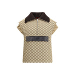 The Gucci bomber Gilet combines functionality with contemporary character in an essential piece. Sleeveless in design, it features a half zip closure and a single front pocket accented with a leather Gucci logo. Adjustable drawstrings frame the arm openings, adding a dynamic and customizable touch. A detachable ribbed wool collar completes the look, offering versatility and refinement to this iconic style.