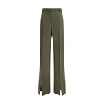 The Gucci boyfriend Trousers, crafted from a refined wool and mohair blend, reinterpret masculine tailoring with effortless sophistication. A relaxed cut and split hem lend the piece a modern character, designed for a femininity that moves with natural elegance. Belt loops, two side pockets, and two back pockets complete the classic construction, while the Gucci embroidered logo on the left back pocket serves as a subtle signature detail. Finished with a hook-tab and zip closure, the trousers embody the Maison’s impeccable sartorial precision.
