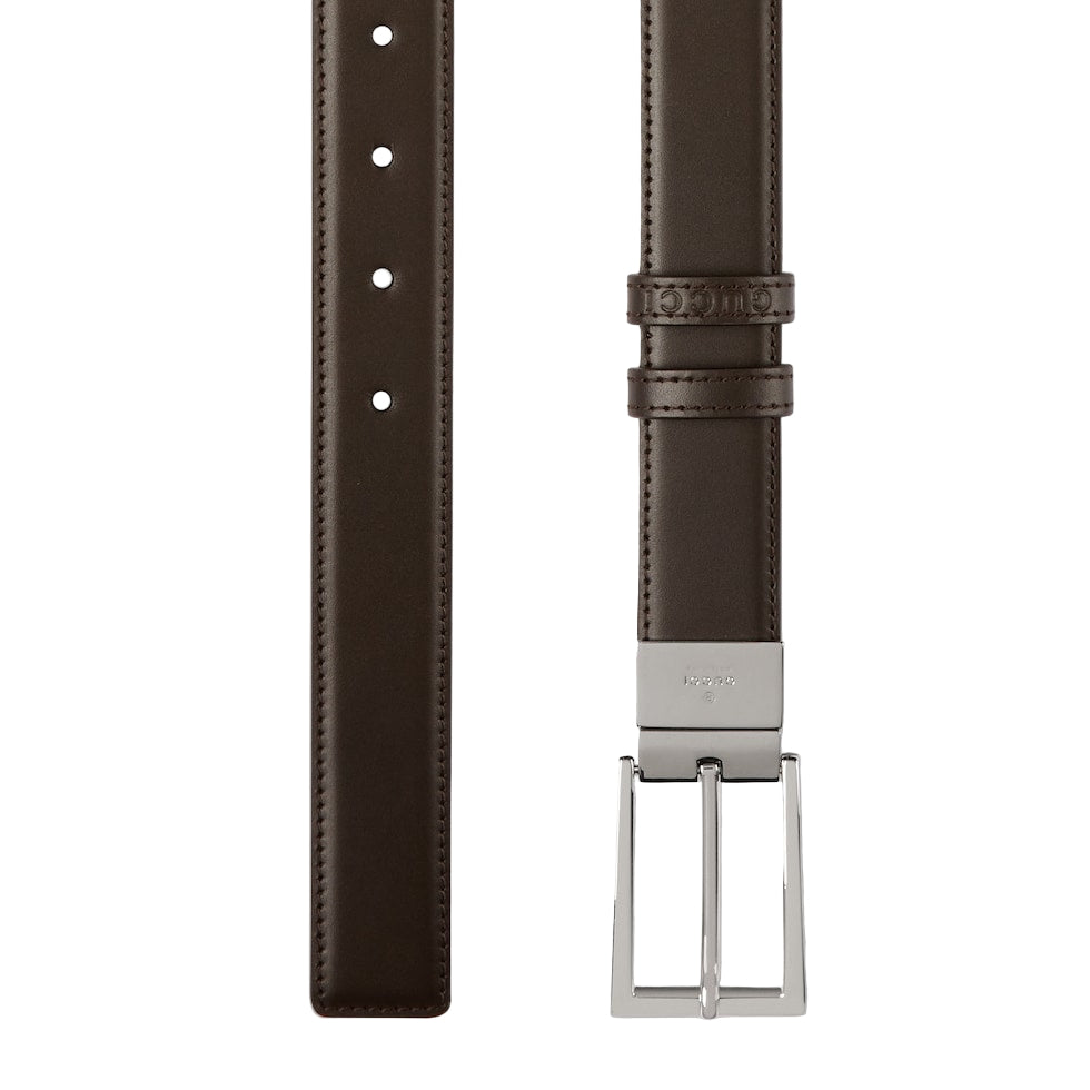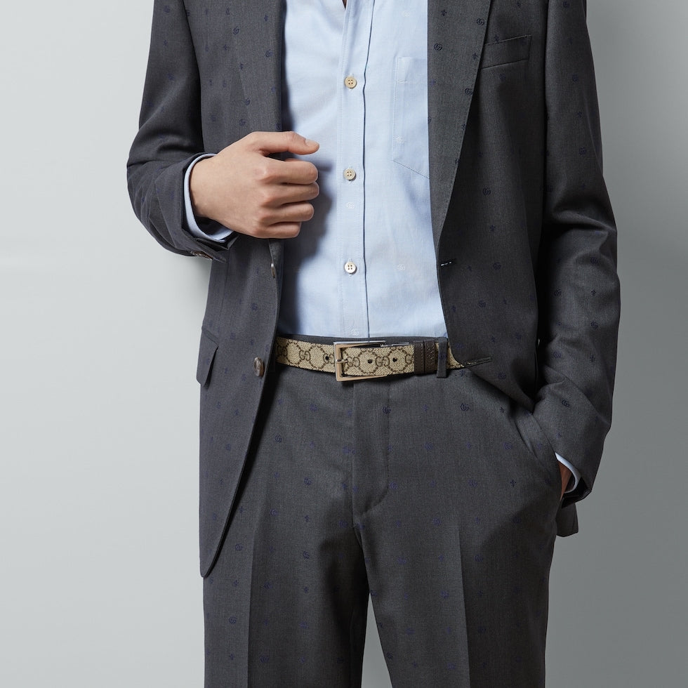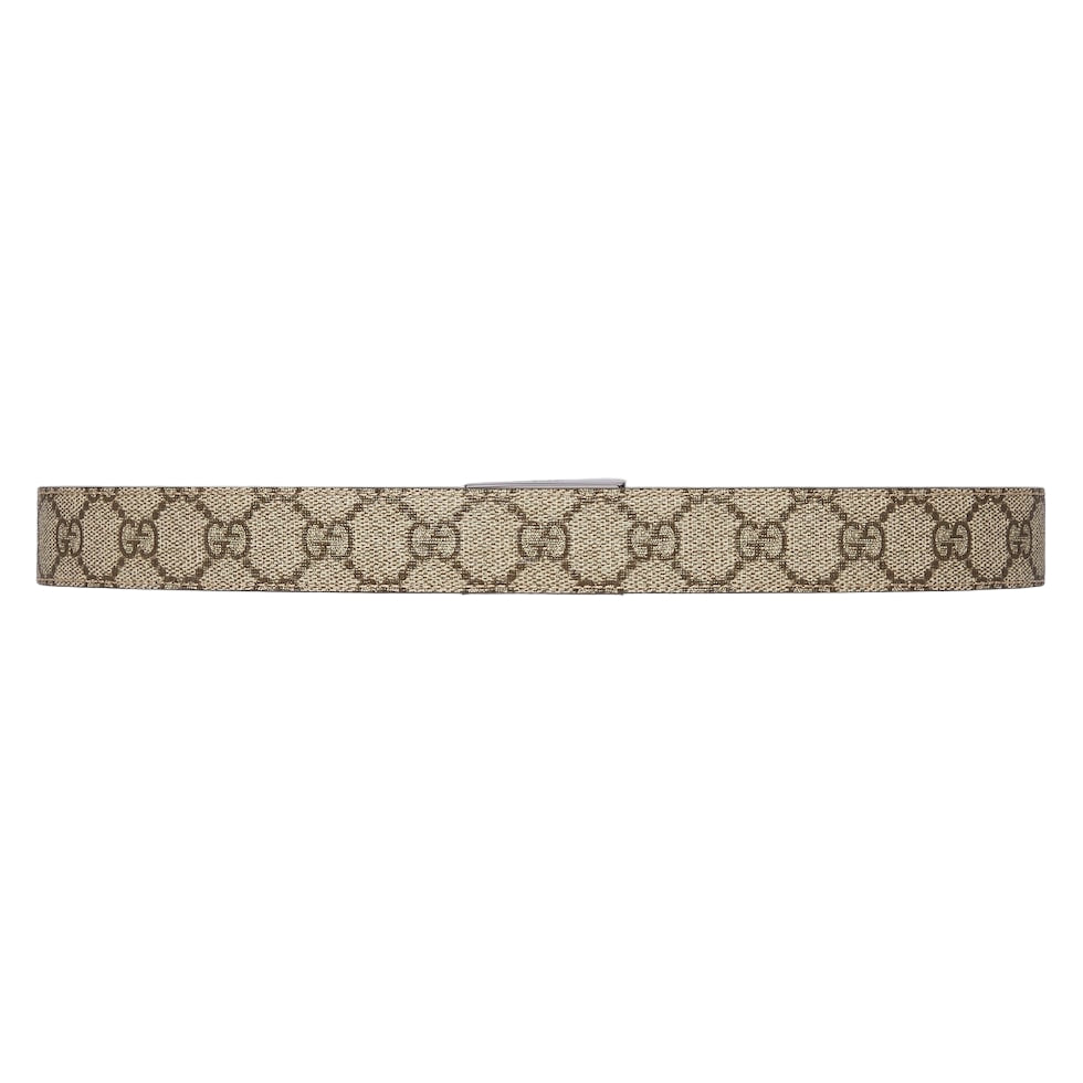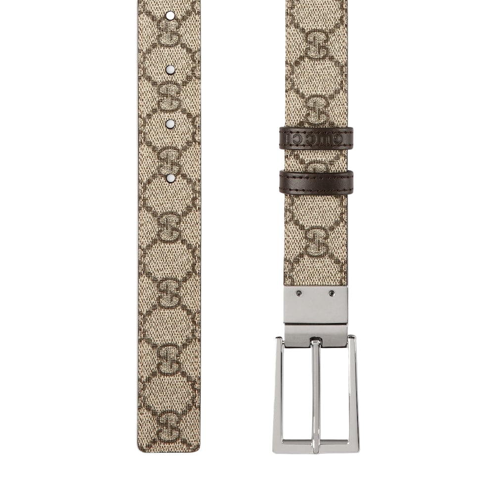 Connecting the House’s past and present, historical codes continue to be interpreted in new ways. This brown leather belt reverses to beige and ebony GG Supreme canvas, offering an alternative look. A rectangular buckle closure finishes the accessory.