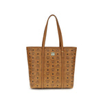MCM’s Toni Tote Bag is made of canvas covered with the classic Visetos print that covers the entire surface, enhanced by a logoed metal tag on the front. Equipped with two flat tassel handles for comfortable carrying, it features a zippered closure for added security. On the back is a slit pocket, while the interior is lined and organized with a zippered pocket and two patch pockets, perfect for maintaining order and practicality.