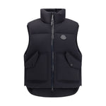 The Otis Padded Gilet from Moncler x EE72 by Edward Enninful blends style with functionality. Made from stretch cotton-blend technical jersey and nylon with a nylon laqué lining, it offers a lightweight yet durable structure. The padded design ensures warmth and comfort, while the zip closure and side vents with snap buttons add practicality. Snap-button pockets and a drawstring hem complete the look, finished with the iconic logo patch, a signature detail of Moncler Genius.