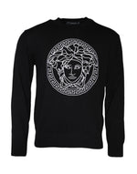 Versace Black Medusa Embroidery Crew Neck Pullover Sweater