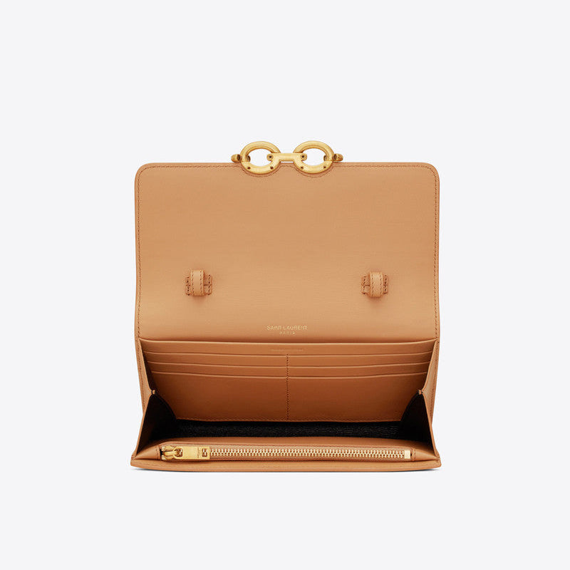 Saint Laurent Le Maillon Canvas Wallet on Chain White